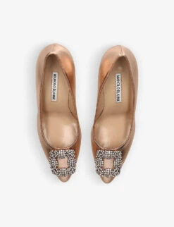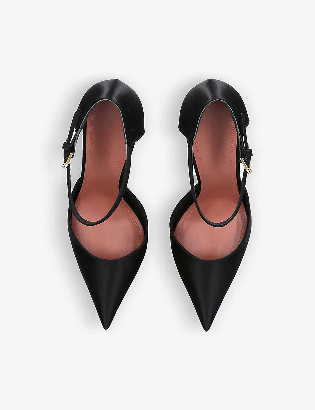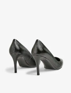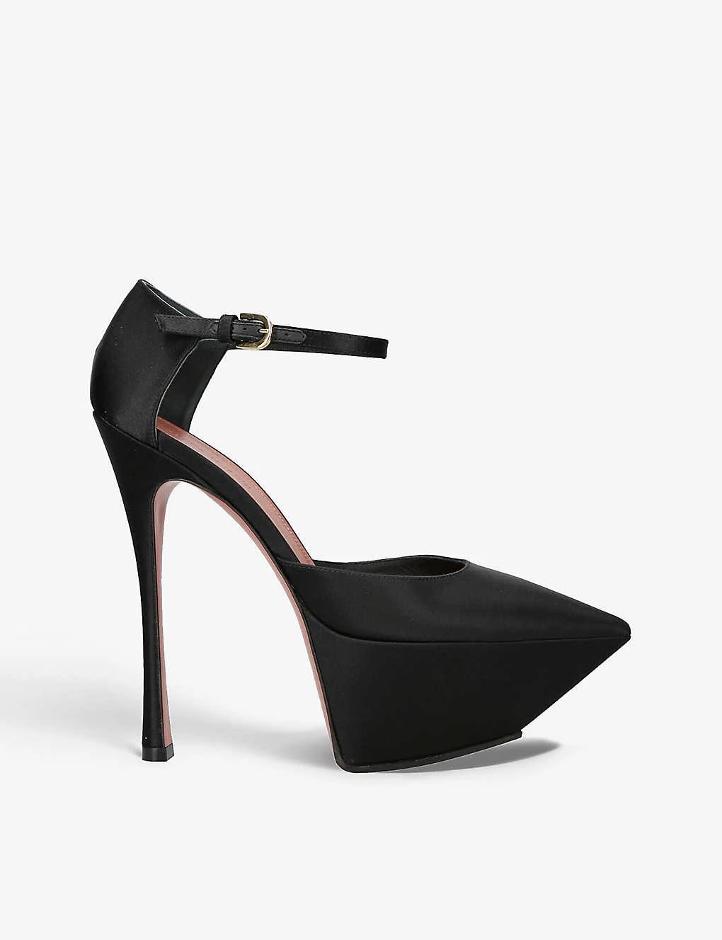 - Closed toe, pointed toe, platform sole, stiletto heel, gold-tone hardware