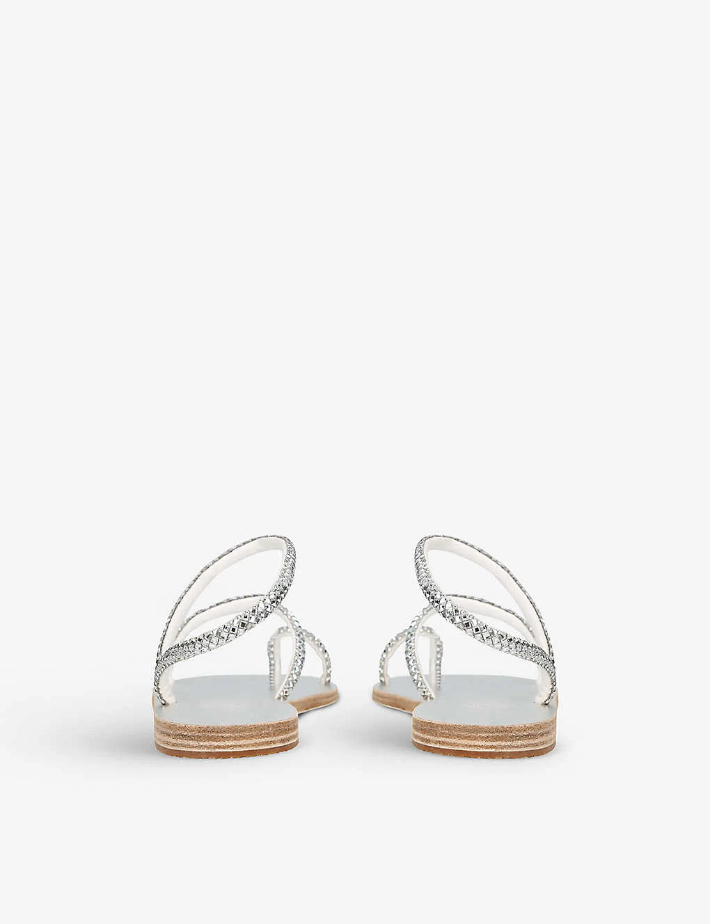 - Handmade, round open toe, asymmetric mirrored embellishment straps, padded foot bed