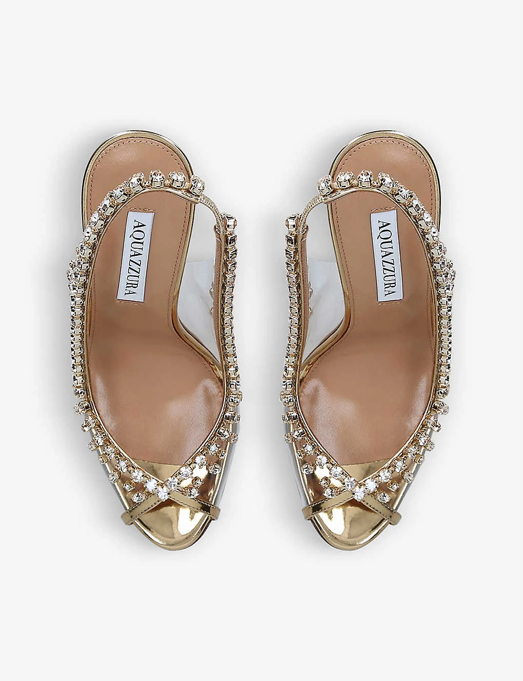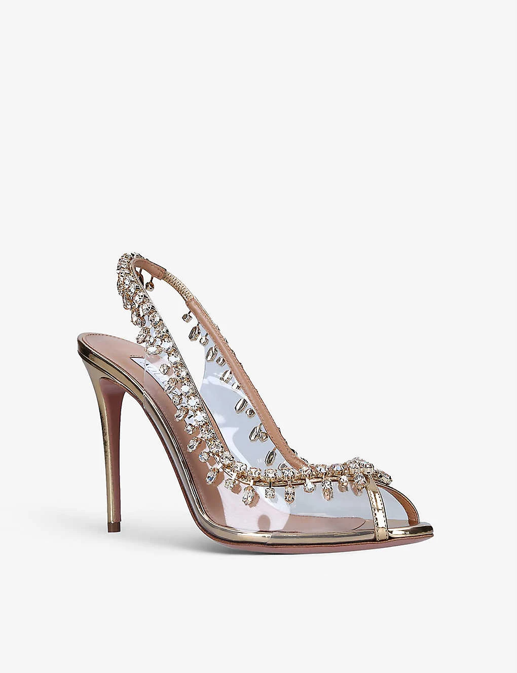 - Aquazurra crystal-embellished leather and PVC heeled sandals