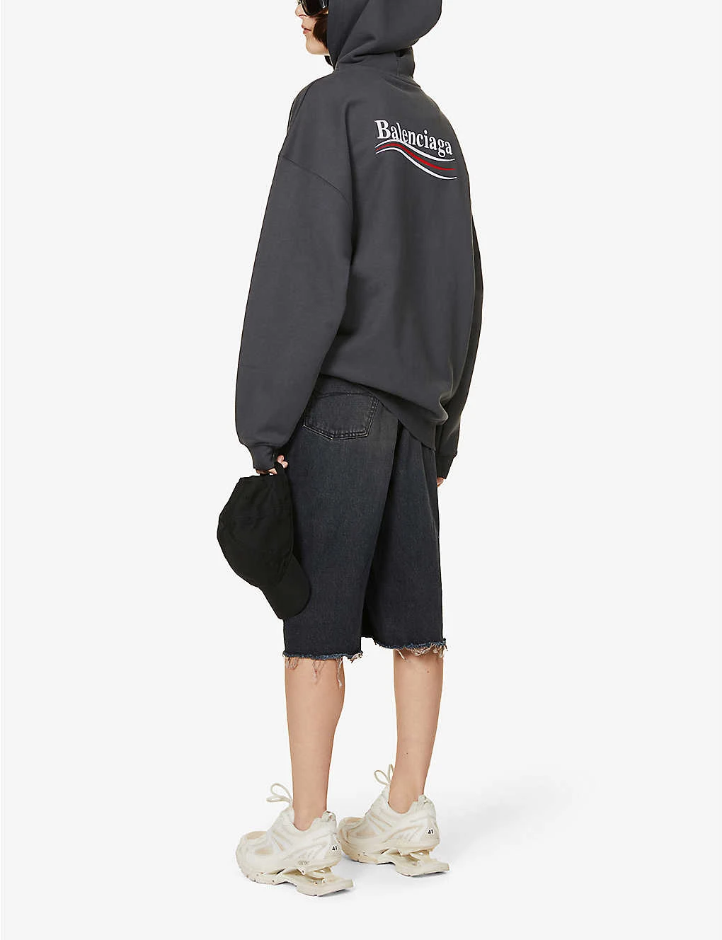 - Round toe, worn-out effect, suspended heel design, embroidered size at back, rubber logo on tongue, pull tab
