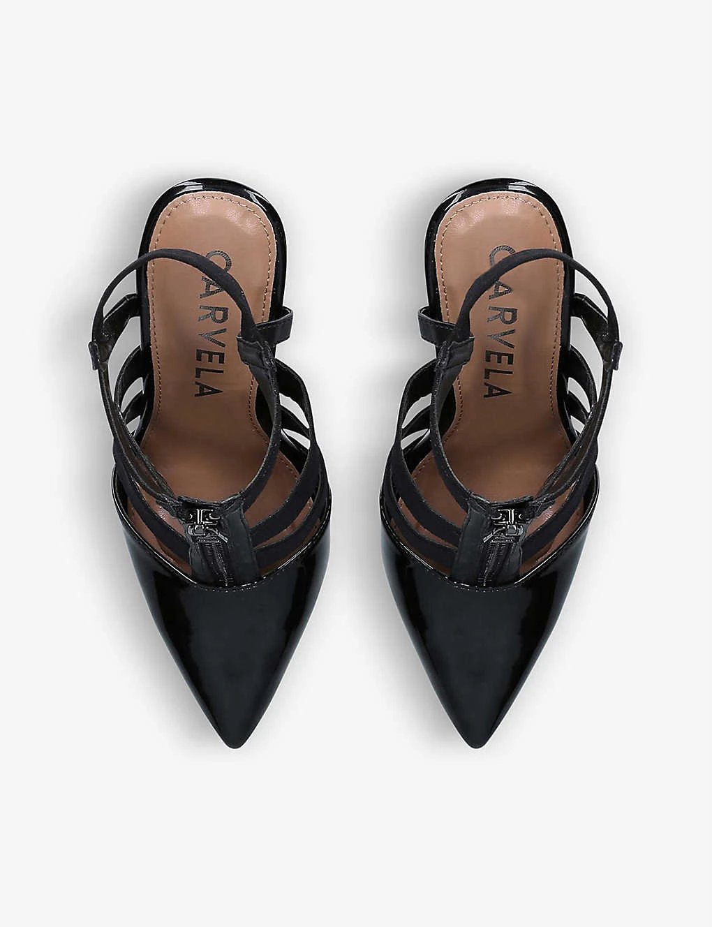 Carvela Kunning Zipped Pointed-toe Patent Faux Leather And Woven Courts