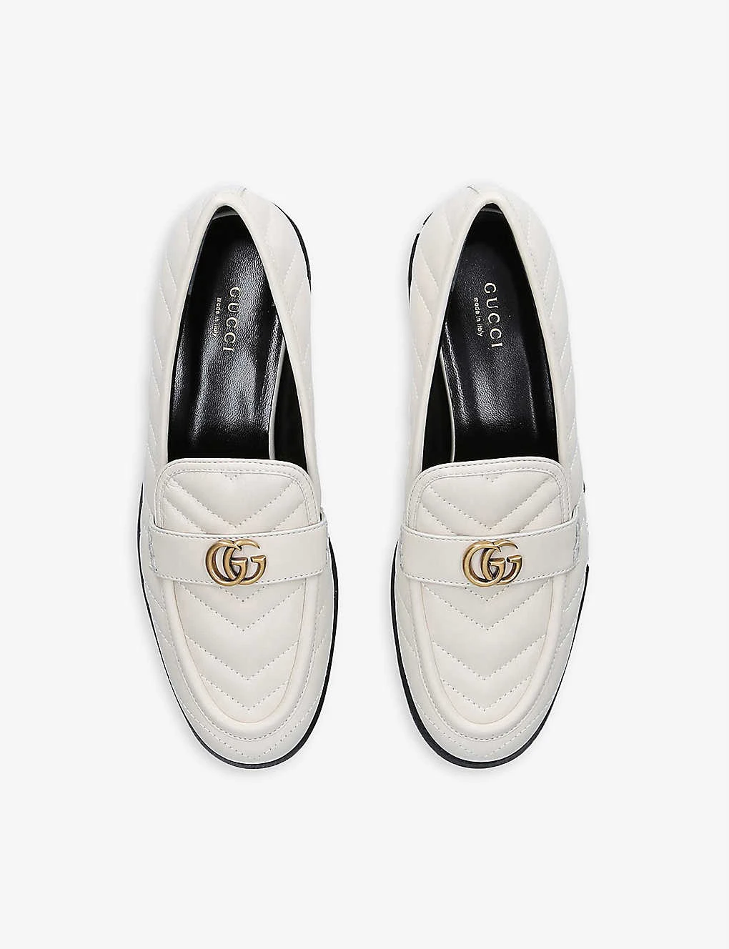 - Round toe, quilted matelassé finish, Double G hardware, gold-toned hardware