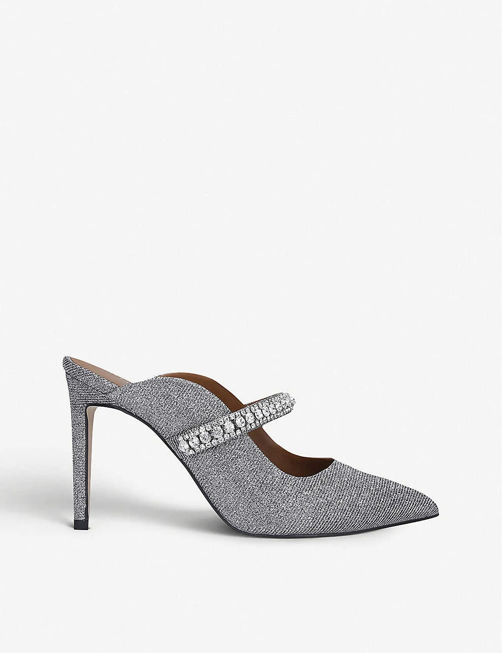 Pointed toe, embellished trim, covered stiletto