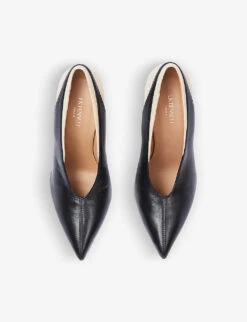 - Pointed toe, stiletto heel, closed back