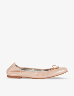 - Square toe, all-over crinkled leather texture, elasticated trim, bow-embellished
